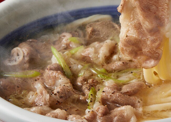 牛の旨みがたっぷり詰まったコク深い味わいの特製だしは、神戸牛の旨みを余すところなく感じられるように仕立てました。白ねぎは、シャキっと食感のアクセントをもたらします。仕上げに振りかける黒こしょうで、甘みのある神戸牛のだしが引き締まり、最後の一滴まで神戸牛の旨みをご堪能いただけます。