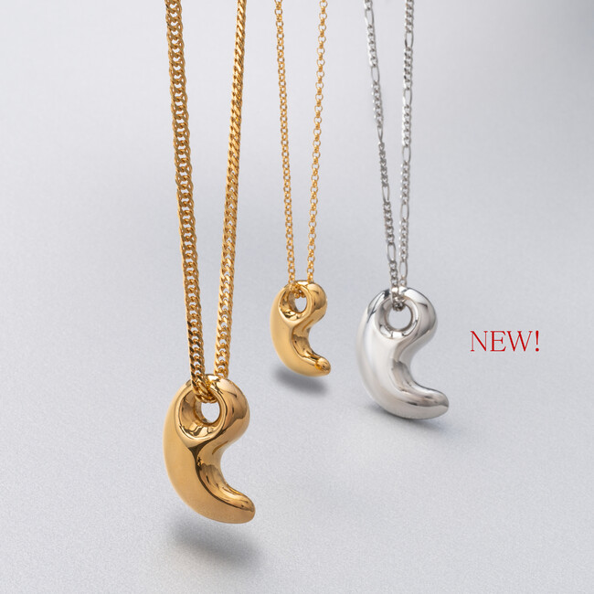 2022年10月1日より新たに導入されるプラチナ製勾玉ペンダントトップは、プラチナのクールな輝きが純金とは一味違う、品のある輝きを生み出しています。サイズは大小の展開で、同じプラチナ製チェーンネックレスと合わせるだけでなく、ゴールドネックレスとの組み合わせもお勧めです。