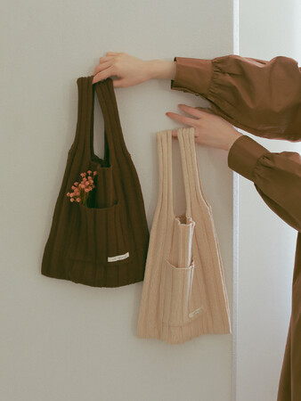 太めのリブが雰囲気のあるニット素材のバッグ。