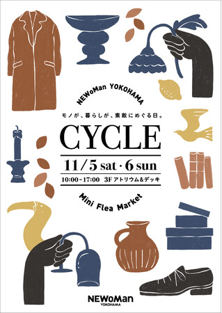 11月5日(土)・6日(日)の2日間、「モノが、暮らしが、素敵にめぐる日。」をテーマに大切に受け継がれてきたヴィンテージアイテムを取り扱うショップや、輸入や生産時の環境負荷が少ない手段でお菓子づくりを行なう焼菓子ショップ等、4ブランドが一同に集結した「CYCLE-Mini Flea Market」を開催いたします。