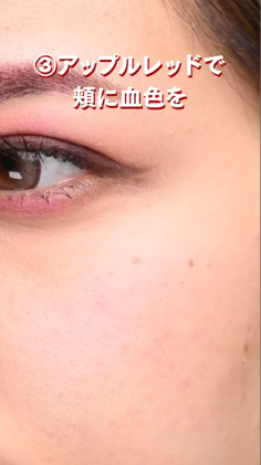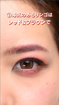 3色の赤み系アイシャドウを用いて、りんご感のある目もとを演出。