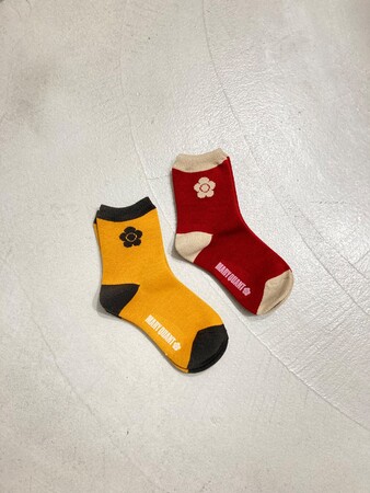 かぼちゃとりんごを想起させるオレンジとワインレッドで足元からハロウィンを。