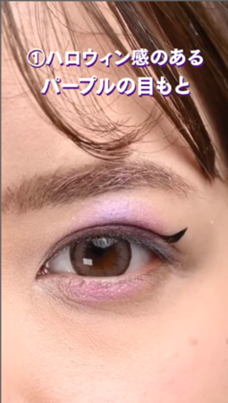 ハロウィンを感じさせる、印象的なパープルの目もとに