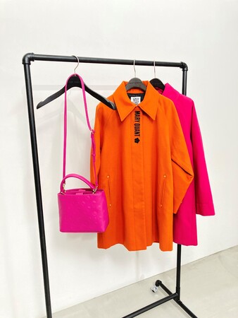 ・ラグランフロントロゴロングコート(オレンジ/ピンク)