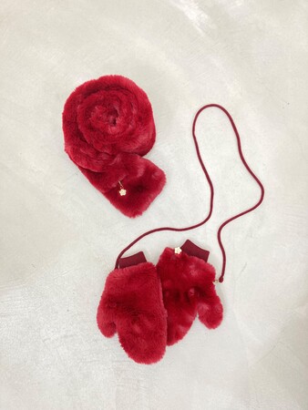 上品なレッドにあたたかいファーで、洗練された印象に。