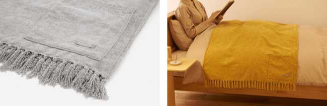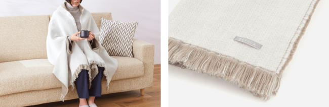 また、お肌に触れるアイテムだからこそ、おうちで洗える仕様にしているのもこだわりのポイントです。現在発売中のブランケット(9種類)に加えて、質感やカラーの多彩な9種類を新たに追加。ラインアップを多くそろえて、より一人ひとりのライフスタイルや好みに寄り添うブランケットが登場します。ぜひ、この冬を一緒に乗り越えるアイテムとしていかがでしょうか。