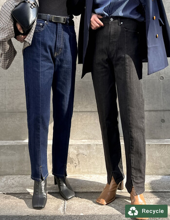[低身長/高身長サイズ有]センタースリットリサイクルデニム