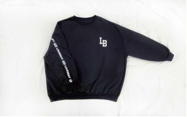 大き目サイズで作られた「LOVE BOAT」のスウェット。フロント胸元とバックにロゴがデザインされています。モノトーンの配色で、着まわしやすさも抜群。こちらもショッパーが付いてきます。