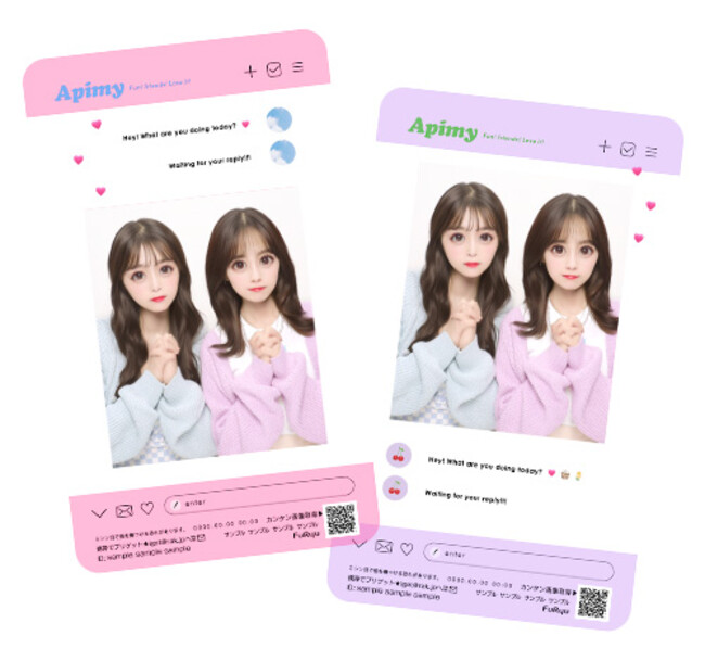 仲良し感をさらにアップさせる「ニコイチシール」を搭載。『apimy』では、色違いやお揃いのデザインが2枚1セットになったシールをご用意し、友達とシールを選ぶわくわく感もお楽しみいただけます。ニコイチシールは、透明のスマホケースなどに挟んで友達と一緒に持ち歩くと2人の“仲良し感”を周りに自慢することもできます。