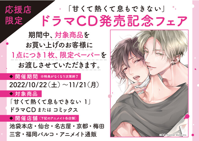 【店舗限定特典】「甘くて熱くて息もできない 1」ドラマCD発売記念フェア