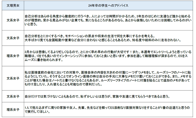 2024年卒の大学生に向けたメッセージやアドバイスは「自己分析を徹底的に」「早めの行動」「面接練習にも参加を」「人に頼ることも大事」【図7】