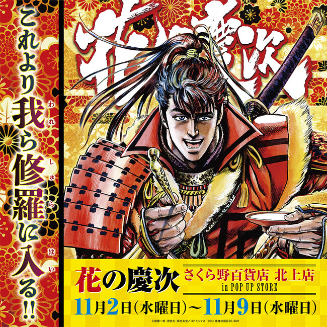 マンガ、アニメ、特撮などを始めとするサブカルチャーをテーマとした企画展を開催・運営している株式会社クレイジーバンプは、【花の慶次~傾いて候、墓場に参ろう~POP UP STORE in さくら野百貨店 北上】を11月2日(水)10:00~11月9日(木)の期間でさくら野百貨店 北上店にて開催いたします。(https://hakabanogarou.jp/archives/33413)