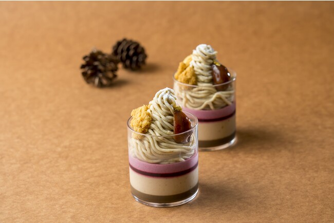 和栗を使用した特製モンブランクリームはこっくりとした素朴な甘さに仕上げ、滑らかな食感になるよう丁寧に絞りました。カシスムースとカシスジュレの甘酸っぱさが、心ときめくアクセント。カップ底には栗のババロアに包まれたほうじ茶生地とほうじ茶チョコクリームを配しています。ふんわりと鼻に抜けるほうじ茶の芳しさが余韻として残り、最後まで飽きることなく楽しめる一品です。
