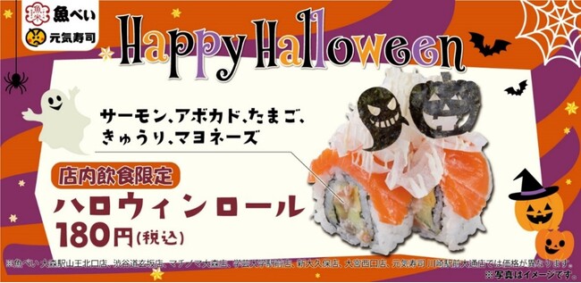 寿司レストランチェーンを展開する元気寿司株式会社(本社:栃木県宇都宮市 代表取締役会長兼社長 藤尾 益雄)は、全国の元気寿司・魚べいにて2022年10月19日(水)より、『ハロウィンロール』を店内飲食限定で販売しています。味も見た目も楽しめる「ハロウィンロール」と共に、お近くの魚べい・元気寿司でハロウィン気分をお楽しみください!