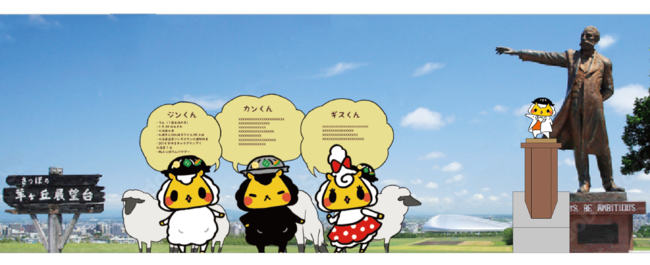 ジンくんの家がある羊ヶ丘展望台を立体造形で再現。さらに、クラーク博士に扮したジンくんも登場!