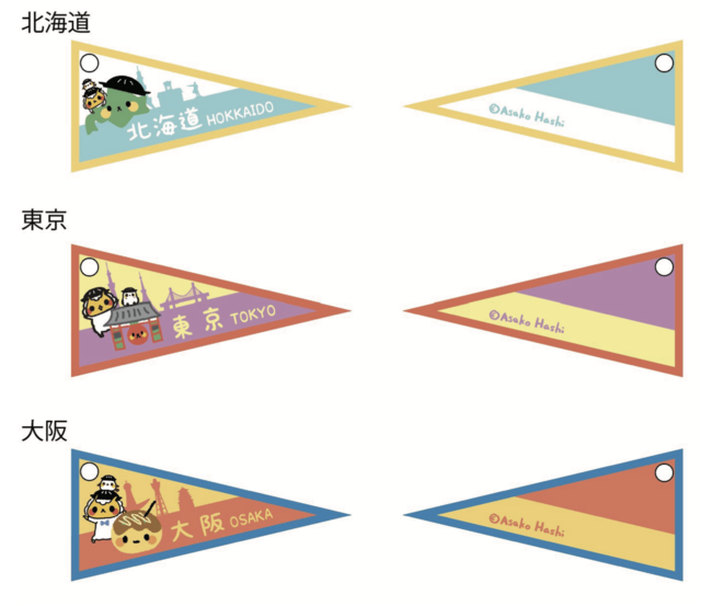 「ペナント型キーホルダー(3種)両面プリントデザイン」