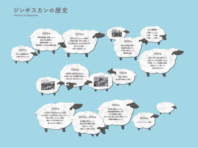 ジンギスカンの歴史パネルやジンギスカントリビアを展示致します。