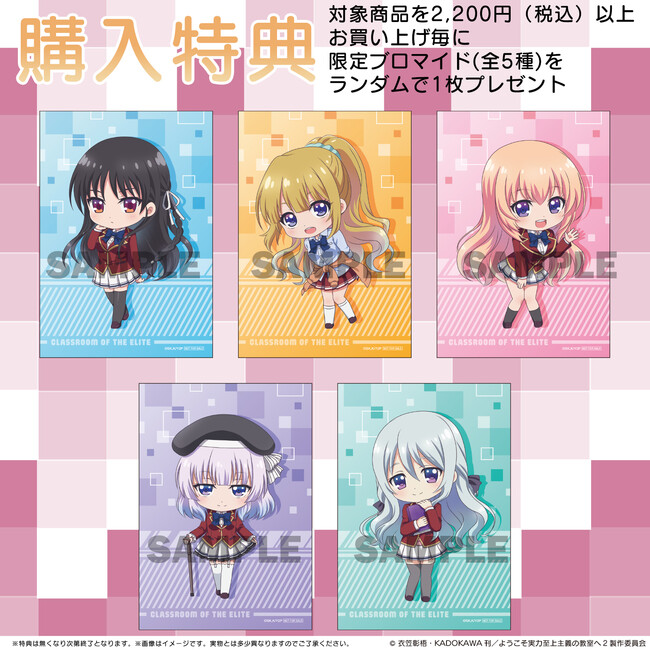 TVアニメ『ようこそ実力至上主義の教室へ』対象商品を2,200円(税込)以上お買い上げ毎に「FaNeMa限定ブロマイド」(全5種)をランダムで1枚お付けいたします。