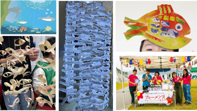 また、本イベントには本学経営学部の学生12名が参加し、2つのワークショップ実施やチャリティショップの出展、岩手県立釜石祥雲支援学校と共同で「およぐさかなモビールライト」を制作し会場での展示を行うなど釜石市の海の魅力を、地域交流を通して発信していきます。