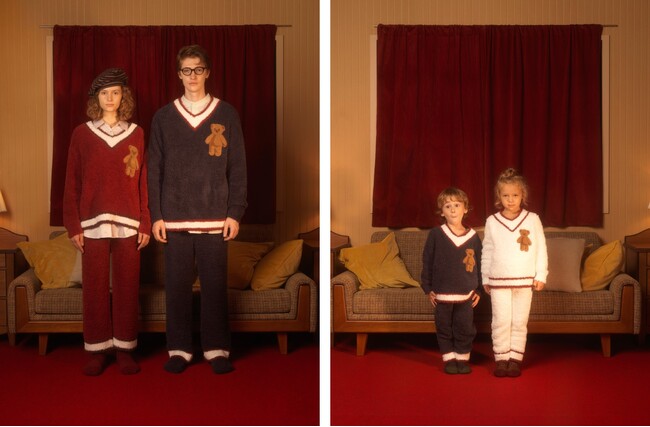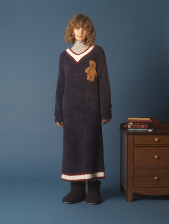 ホリデーシーズンの主役「ホリデーベア」といるイルミネーションを思わせるネップやロゴデザインのルームウェア。