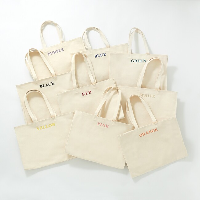キャンバス素材を使用し、バッグ内側にはペットボトルを収納するための仕切りが付いている他、汚れにくいコーティング加工を施しています。遠征時にも使いやすいよう、背面にはキャリーバッグに通せるタブを付けています。また取っ手部分にはキーホルダーを取り付けられるDカンをご用意しました。横にしたうちわがすっぽり入るワイド仕様です。各カラー名の刺繍入り。