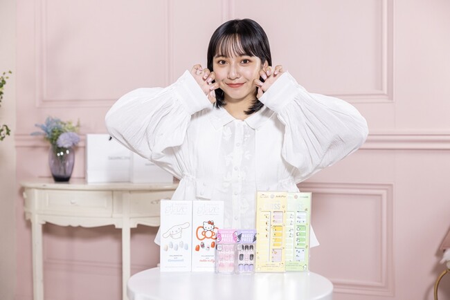 サンリオのキャラクターがデザインされたジェルネイルの広告表現において、キャラクターと好相性であり、美しさと可愛らしさを兼ね備えた女優 山之内すずさんを起用いたしました。