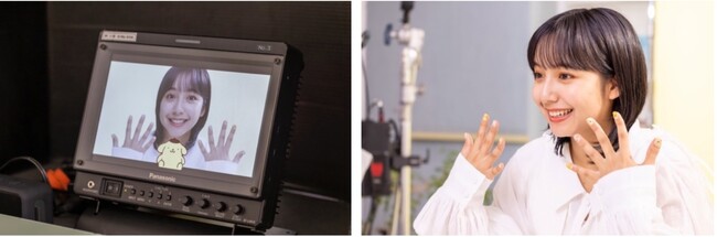 「初めてこういうパステルな、可愛らしい世界観の撮影だったので嬉しかったです。お気に入りのシーンは、ずっと爪にキャラクターがデザインされていて、どれも癒される時間でしたけど、特にマイメロディのシーンはかわいく撮れたと思います!」