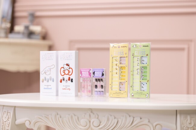 ジェルランプで硬化するタイプのセルフネイルシール「glaze(グレーズ)」からは、サンリオキャラクター大賞で人気No.1、今年で20周年を迎えたシナモロールと、ハローキティのデザインが、キャラクターの世界観をグラフィックで表現して登場します。