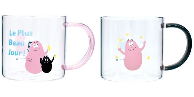 【バーバパパ】耐熱ガラスマグ(ピンク/グレイ) 各2,200 円(税込)
