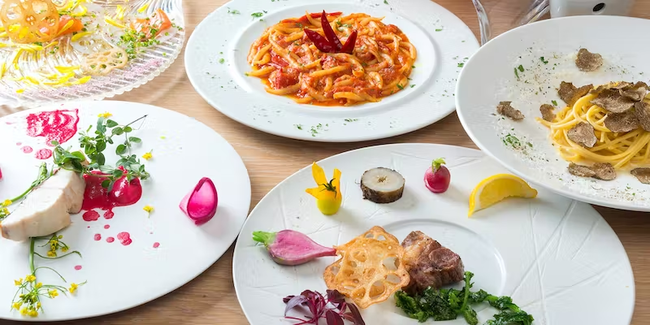 バラエティー豊かな店舗が集まる本施設のなかでも、シーズンごとにさまざまなメニューが登場するレストラン&テイクアウトエリアからクリスマスシーズン限定のメニューが登場。ちょっと贅沢したくなる季節にぴったりのこだわり素材を活かしたディナーコースやアラカルトメニュー、テイクアウトでも楽しめるホットドリンクなど、和洋中の多彩な限定メニューをご紹介します。