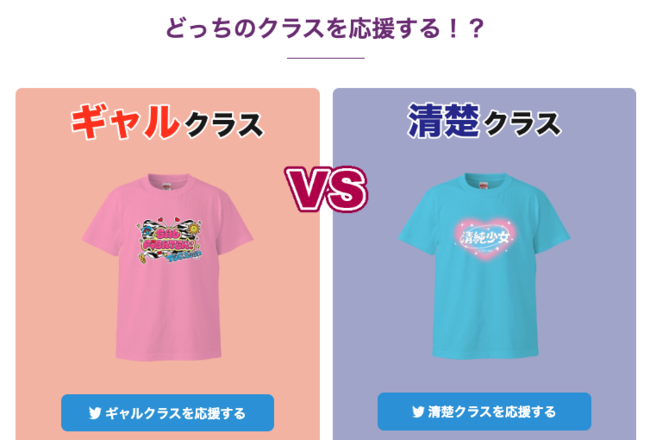 出演モデルが「ギャルクラス」、「清楚クラス」に分かれて、オリジナルクラスTシャツの販売権をかけてクラス対抗秋の大運動会を行ないました。3種目の内、最終種目の「ツイッター投稿合戦」がUp-T特設サイト内で行われます。どなたでも気軽に参加可能なイベントとなっており、投稿者の中から抽選で豪華なプレゼントもご用意しておりますので、奮ってご参加ください。あなたの応援で推しクラスのクラスTシャツを発売させよう!