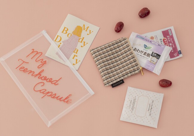 心と身体の変化に寄り添うBOOKやDAYLILYアイテム、オリジナルナプキンポーチ等がセットに