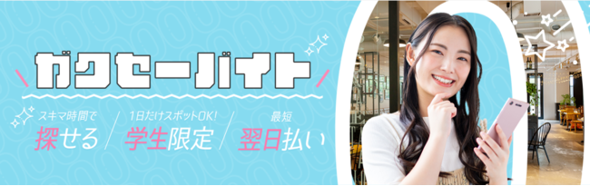 株式会社C3(本社:東京都豊島区、代表取締役:岩井英治)は授業やサークル、遊びなどでシフトを組むアルバイトが難しい学生の為に、来社不要、WEB上で簡単登録、好きな時間に、好きな場所で働けるバイト探し『ガクセーバイト』を11月からスタート致しました。