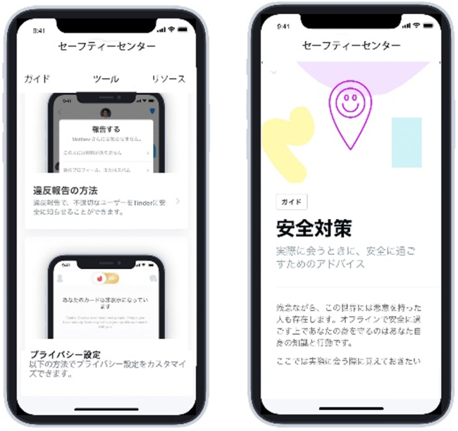 Tinderの安全対策に関する様々な情報を集約したガイドラインです。