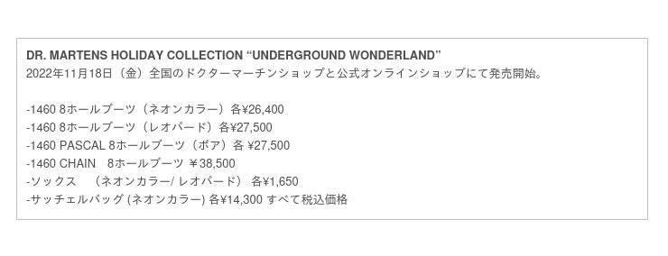 今回のホリデーコレクションはモデルにアンダーグラウンドシーンの人々を起用し、誰もが自分らしく多様な自己表現が共存するノスタルジーとエネルギーに満ち溢れた楽しいホリデーを過ごすイメージとドクターマーチンのブランドメッセージとを融合させた世界観となっています。また、同時にブランドとしてサポートしているPRIDE活動へのメッセージも込められています。ドクターマーチンのホリデーコレクションは2022年11月18日(金)より全国のドクターマーチンショップと公式オンラインショップにて展開開始。