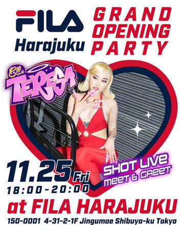 この度「atmos」が運営する「FILA Harajuku」は移転リニューアルオープンを祝して、フィメールラッパー”Elle Teresa”を招き「FILA Harajuku GRAND OPENING PARTY」を開催致します。