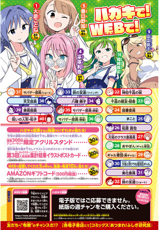 週刊少年チャンピオン52号(11/24日発売)では、ついに「あつまれ!ふしぎ研究部」(著:安部真弘)が連載300回!! これを記念して、約2年ぶりのキャラクター人気投票を実施!今回は「ふし研」史上初の試みとして、WEBでも人気投票を受付! WEB版では、誰でも1日1回投票できる他、毎週抽選で10名(合計30名)にAmazonギフトコード(500円相当)をプレゼントします。