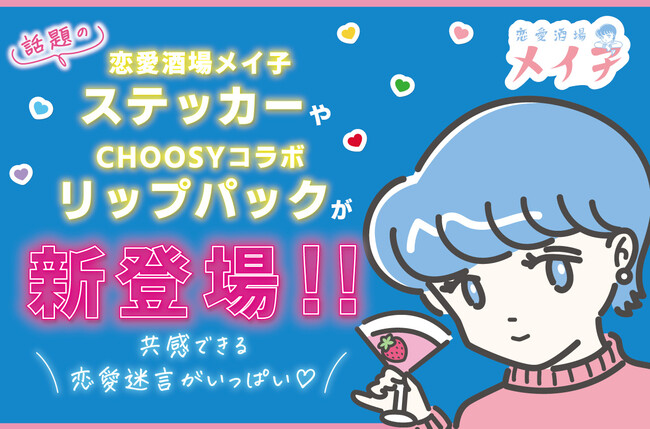 株式会社サン・スマイル(本社:東京都港区/代表取締役社長:田中徳也)は、日本で唯一のプチプラ“くちびる専用パック”をはじめとする、数々のリップケアアイテムを展開するブランド『CHOOSY(チューシー)』より、恋愛酒場メイ子とコラボしたリップパックを全5種類、2022年12月1日(木)に新発売いたします