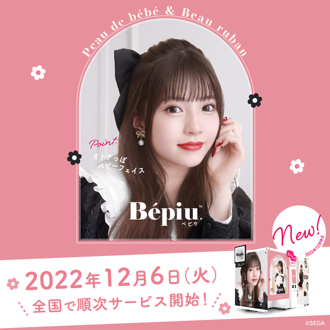 株式会社セガ(本社:東京都品川区、代表取締役社長COO:杉野行雄、以下 セガ)は、最新プリクラ機『Bepiu.(ベピウ)』を本日2022年12月6日(火)より全国でサービス開始いたします。