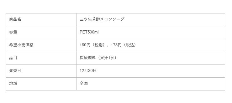 アサヒ飲料株式会社(本社 東京、社長 米女太一)は『三ツ矢芳醇メロンソーダ』を12月20日から期間限定で発売します。