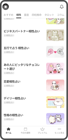 各占いコンテンツをタップするか、上記2.の「相性占いのリスト」から占いたい相手をご選択ください。