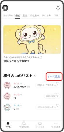 2. 下にスクロールして「相性占いのリスト」の「すべて見る」タップ