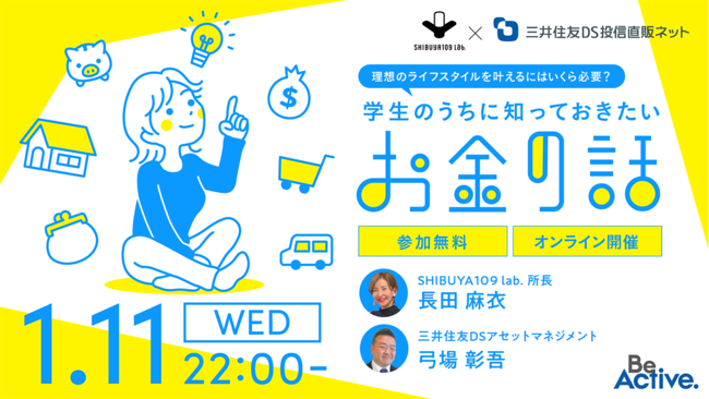 三井住友DSアセットマネジメント株式会社(所在地:東京都港区、代表取締役社長 兼 CEO:猿田隆、以下「当社」)は、株式会社SHIBUYA109エンタテイメントが運営する若者マーケティング研究機関SHIBUYA109 lab.と共にオンラインセミナーを開催いたします。