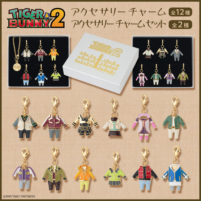 バンダイのキャラクターファッションサイト「バンコレ!」では、アニメ『TIGER & BUNNY 2』のヒーローたちの私服をデザインした「TIGER & BUNNY 2 アクセサリーチャーム(全12種)(各3,300円 税込/送料・手数料別途)」と「TIGER & BUNNY 2 アクセサリーチャームセット(全2種)(各19,800円 税込/送料・手数料別途)」の予約受付を2022年12月9日(金)12時に開始いたします。(企画:株式会社バンダイ)