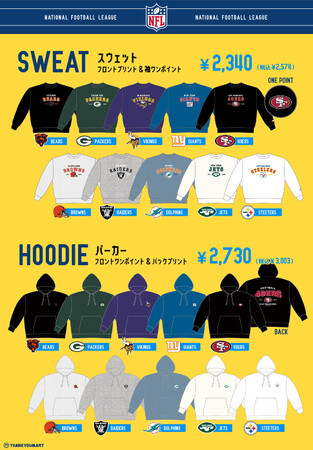 『NFL』10チーム「Green Bay Packers」「New York Giants」「Chicago Bears」「San Francisco 49ers」「Miami Dolphins」「New York Jets」「Las Vegas Raiders」「Cleveland Browns」「Minnesota Vikings 」「Pittsburgh Steelers」とのコラボレーションで展開します。