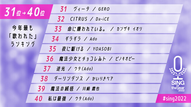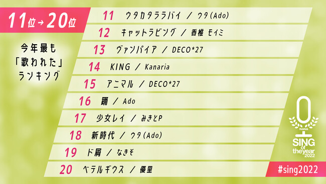 『SING of the year 2021』ランキング(調査期間:2021/12/1~2022/11/30)