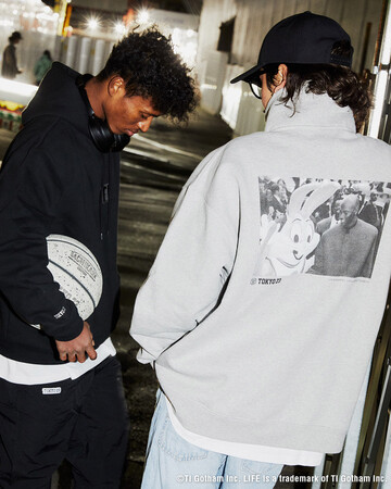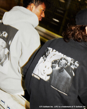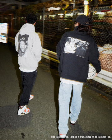 「LIFE magazine」は1936年から2007年までアメリカ合衆国で発行されており、写真を中心に構成された「グラフ雑誌」。過去のコラボレーションでは、バスケットボールにゆかりのあるスターたちのフォト Tシャツを展開。今回のコラボレーションでは1996年の『スペース・ジャム』公開時に撮影されたマイケル・ジョーダン(Michael Jordan)と、バッグス・バニーの2ショットをバックにプリントしたクォータージップスウェットと、アメリカの映画監督でニューヨーク・ニックスの大ファンである【スパイク・リー】のオフショットをプリントしたフーディスウェットの2型をリリースする。