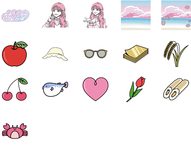 イラストレーター ナガミネショウコさんが描き下ろしたデザインがスタンプとなって登場。 ふわり愛メインビジュアルにご当地のスタンプを組み合わせてオリジナルグッズが作成できま す。