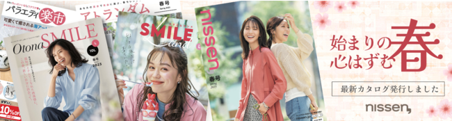 株式会社ニッセン(本社:京都市南区、代表取締役社長:羽渕淳)は、新作商品を掲載したカタログ5誌を、2月15日(水)に発行しました。ニッセンオンラインショップ(https://www.nissen.co.jp/)で最新カタログの誌面閲覧や掲載商品の購入、WEB限定キャンペーンをご覧いただけます。