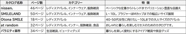 2023年春号カタログは、アパレル商品を中心にした5誌。